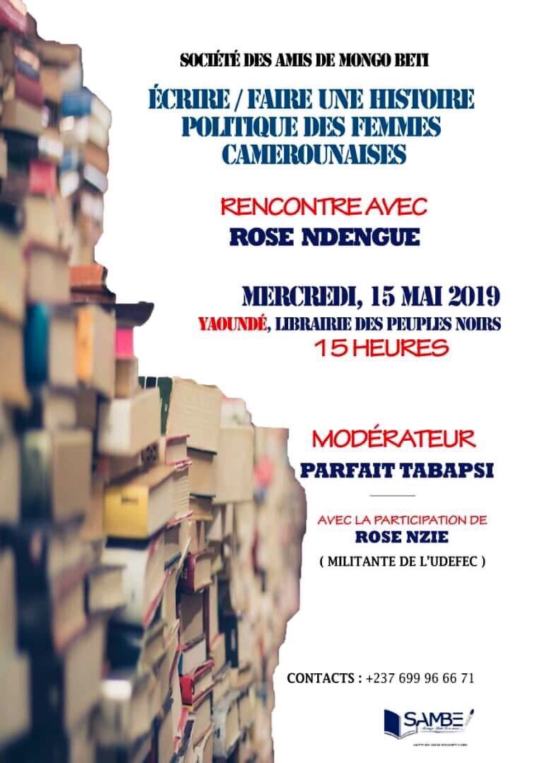 La rencontre intitulée « Ecrire/faire une histoire politique des femmes camerounaises », a été organisée avec maestria par Bergeline Domou et la Société Des Amis de Mongo Beti (SAMBE). Parfait Tabapsi, Redacteur-en-Chef du mensuel culturel Mosaique a assuré la modération.
